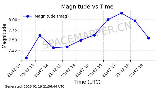 | STARLINK-3576 | 51883 | 51883 | 2022-03-03 同日期轨道 2022-022AH 同批次轨道 | 在轨 | 95分钟 | 53.2166 | 538.826 | 540.692 | 0.0001348 | 2026-02-19 02:31:06 | ||
