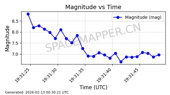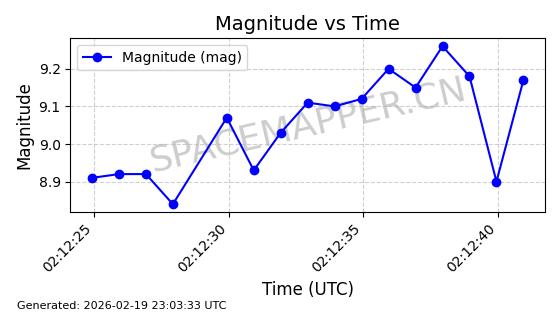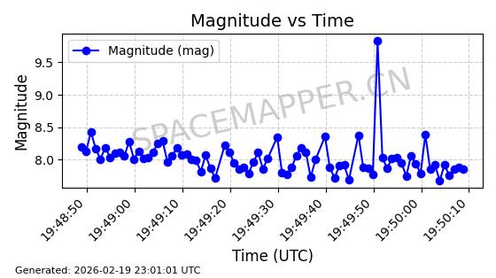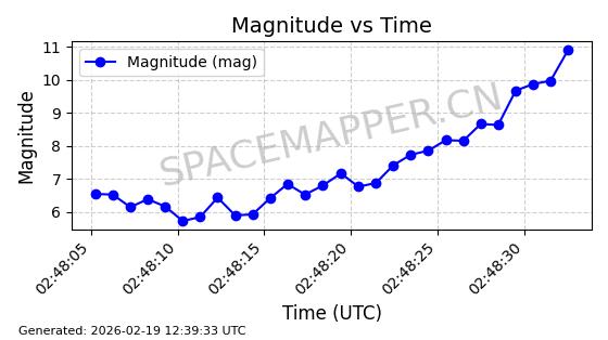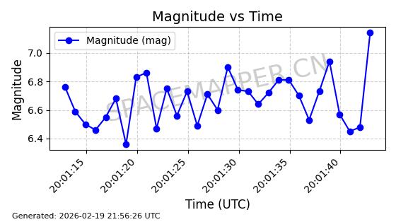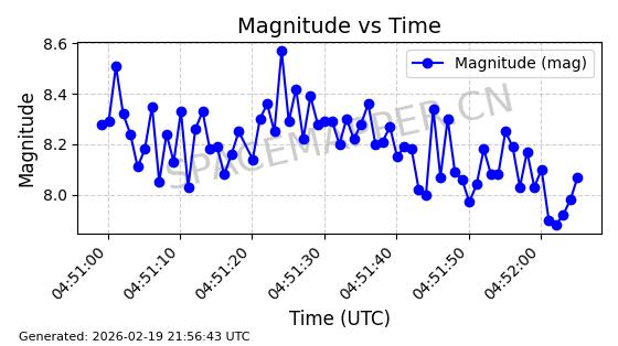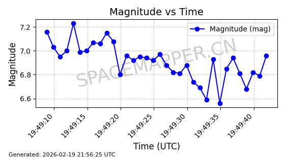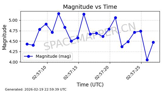 | STARLINK-3592 | 51801 | 51801 | 2022-02-25 同日期轨道 2022-017AK 同批次轨道 | 在轨 | 95分钟 | 53.2177 | 538.761 | 540.719 | 0.0001414 | 2026-02-19 06:30:51 | ||