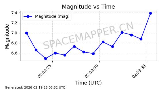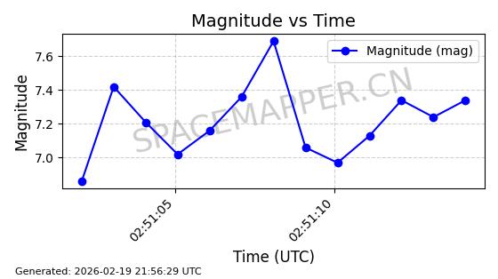 | STARLINK-3551 | 51887 | 51887 | 2022-03-03 同日期轨道 2022-022AM 同批次轨道 | 在轨 | 95分钟 | 53.2149 | 538.803 | 540.733 | 0.0001394 | 2026-02-19 06:40:08 | ||