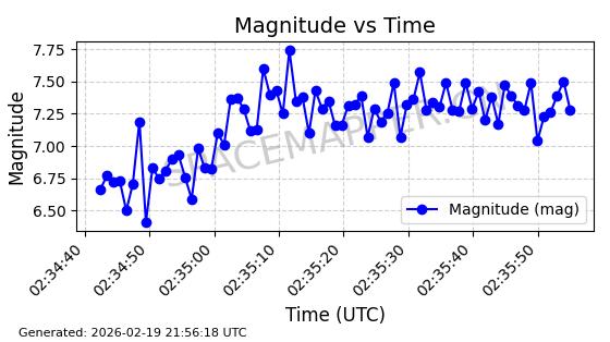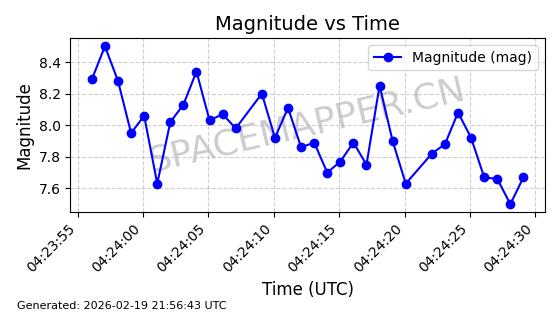 | STARLINK-3560 | 51859 | 51859 | 2022-03-03 同日期轨道 2022-022H 同批次轨道 | 在轨 | 95分钟 | 53.2162 | 538.893 | 540.595 | 0.0001230 | 2026-02-19 02:36:25 | ||