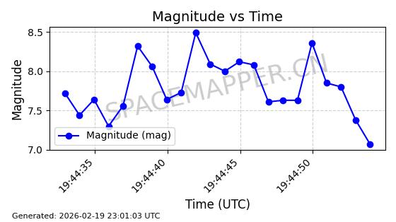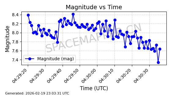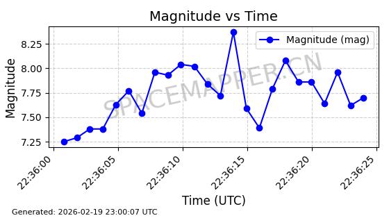 | STARLINK-3569 | 51811 | 51811 | 2022-02-25 同日期轨道 2022-017AV 同批次轨道 | 在轨 | 95分钟 | 53.2167 | 538.841 | 540.653 | 0.0001309 | 2026-02-19 06:42:47 | ||