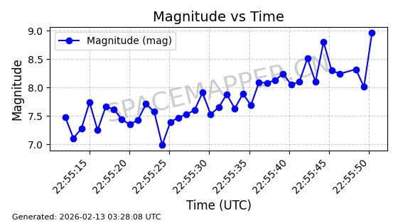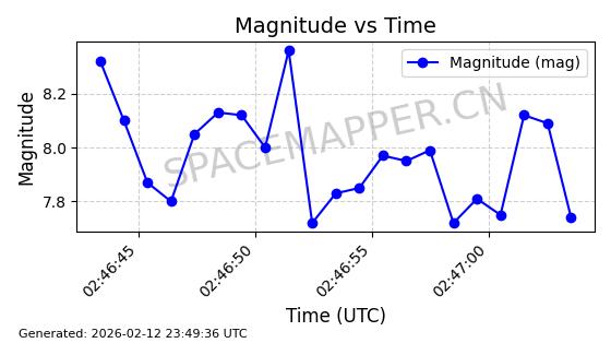 | STARLINK-3625 | 51777 | 51777 | 2022-02-25 同日期轨道 2022-017K 同批次轨道 | 在轨 | 95分钟 | 53.2168 | 538.915 | 540.577 | 0.0001200 | 2026-02-18 10:51:50 | ||