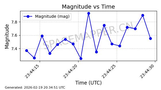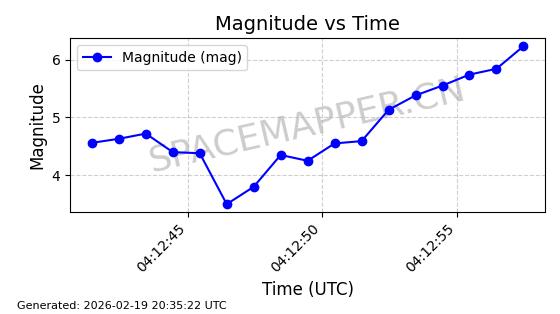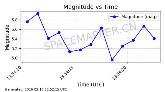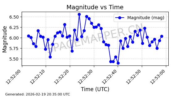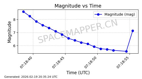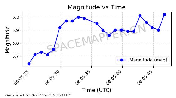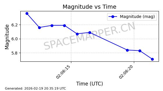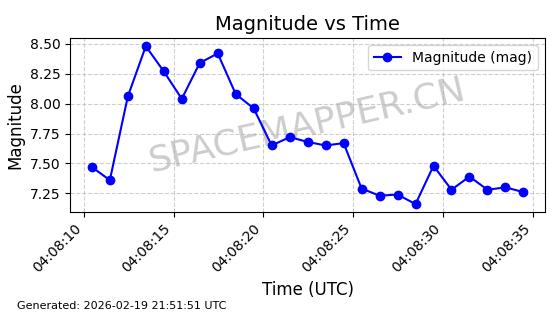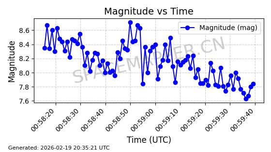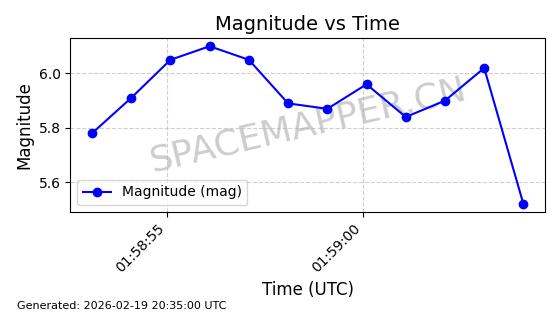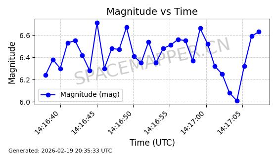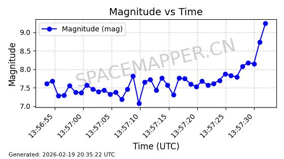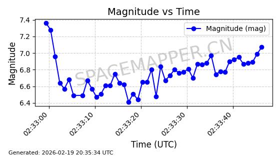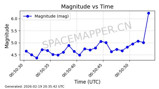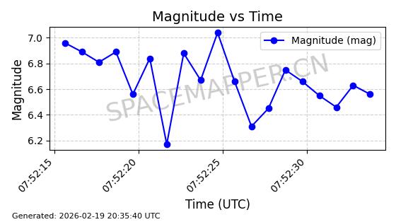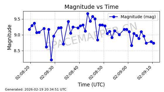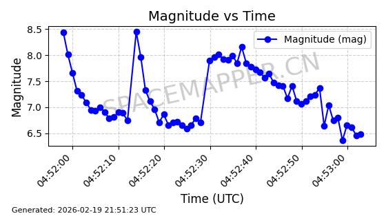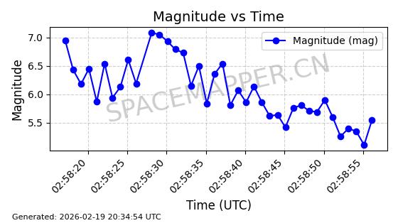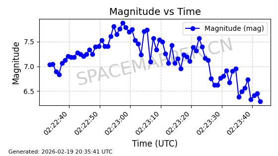| STARLINK-3851 | 52344 | 52344 | 2022-04-29 同日期轨道 2022-045P 同批次轨道 | 在轨 | 95分钟 | 53.2167 | 538.341 | 541.155 | 0.0002033 | 2026-02-19 00:50:24 | ||