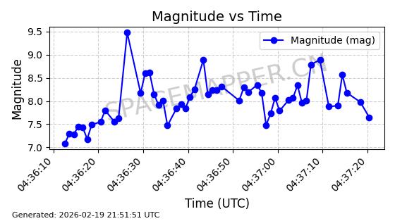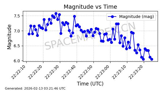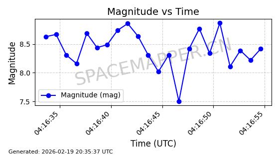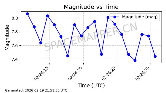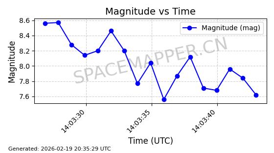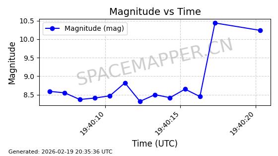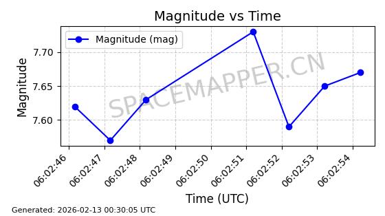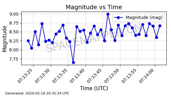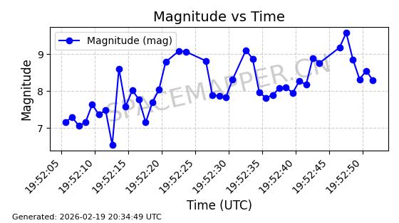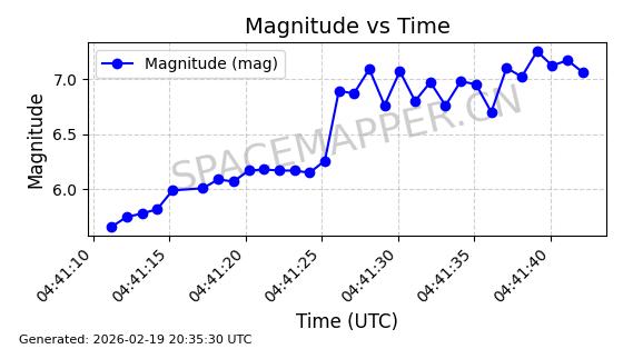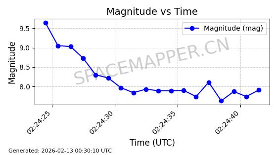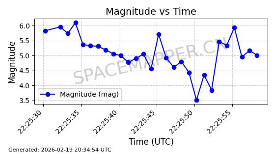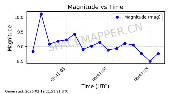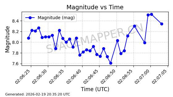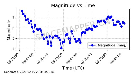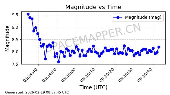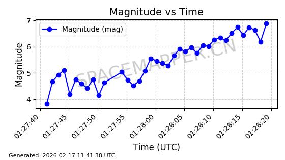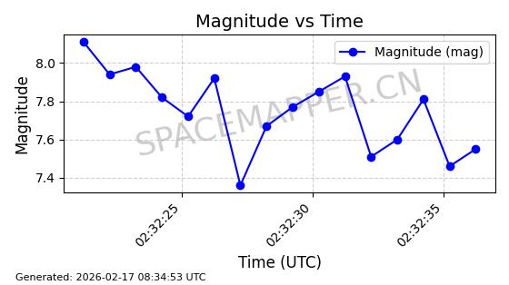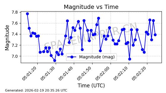 | STARLINK-3851 | 52344 | 52344 | 2022-04-29 同日期轨道 2022-045P 同批次轨道 | 在轨 | 95分钟 | 53.2167 | 538.341 | 541.155 | 0.0002033 | 2026-02-19 00:50:24 | ||
