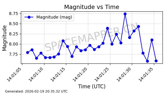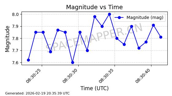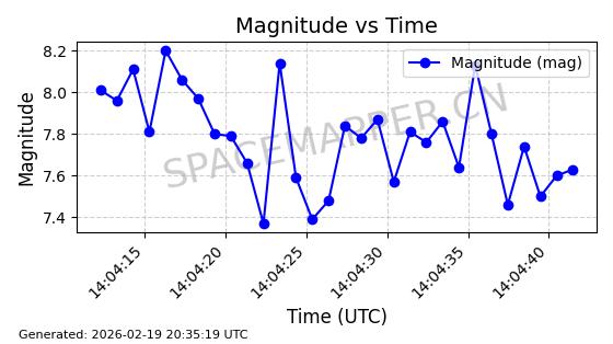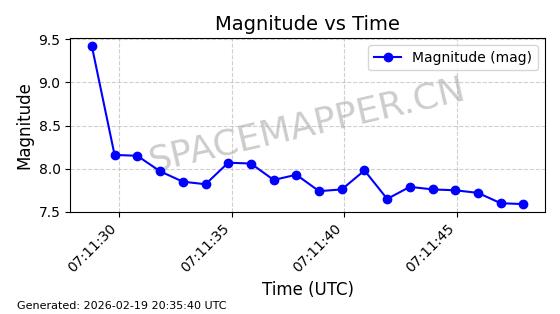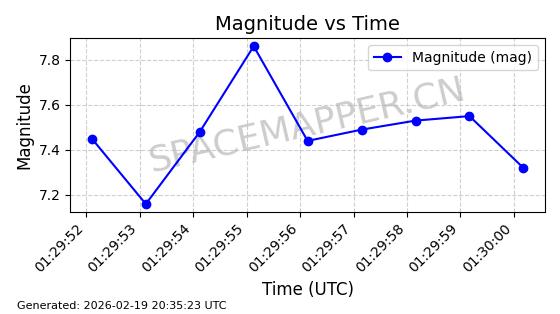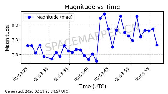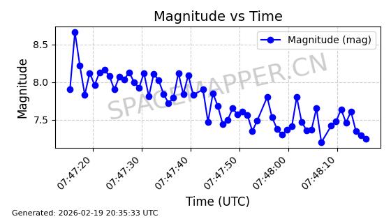 | STARLINK-3807 | 52353 | 52353 | 2022-04-29 同日期轨道 2022-045Y 同批次轨道 | 在轨 | 95分钟 | 53.2169 | 538.771 | 540.751 | 0.0001431 | 2026-02-19 01:53:59 | ||