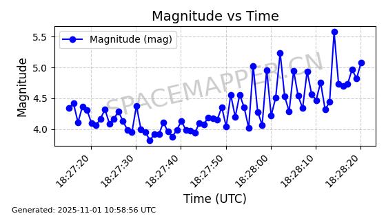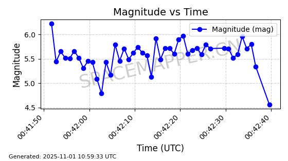 | STARLINK-31036 | 58533 | 58533 | 2023-12-08 同日期轨道 2023-192C 同批次轨道 | 在轨 | 94分钟 | 53.1617 | 474.212 | 476.29 | 0.0001515 | 2025-10-31 07:27:59 | ||