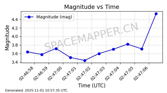 | STARLINK-3101 | 49168 | 49168 | 2021-09-14 同日期轨道 2021-082AQ 同批次轨道 | 已陨落 | 87分钟 | 69.9858 | 141.315 | 157.771 | 0.0012604 | 2025-04-13 20:03:38 | ||