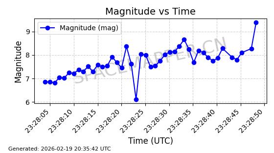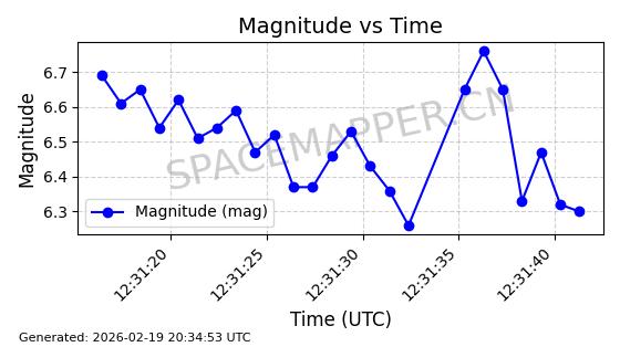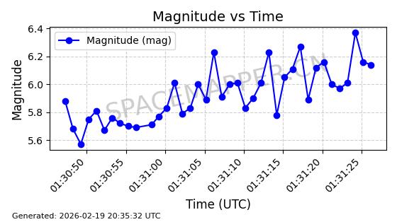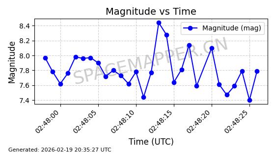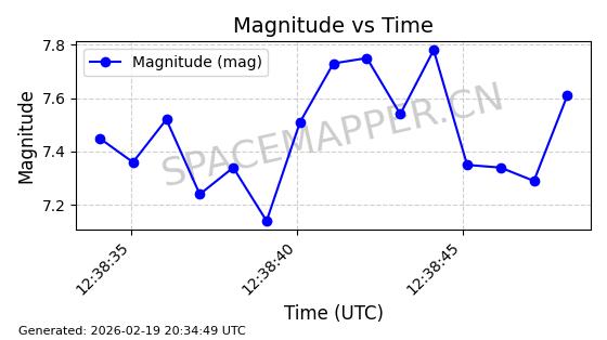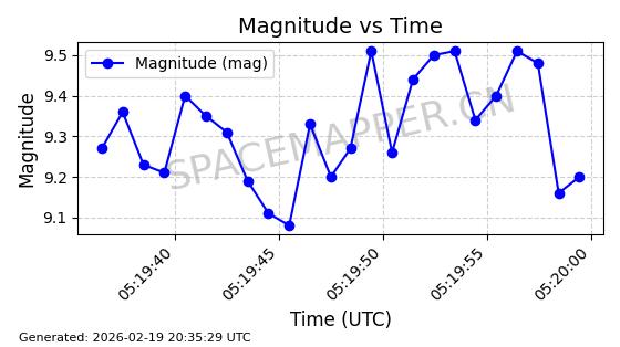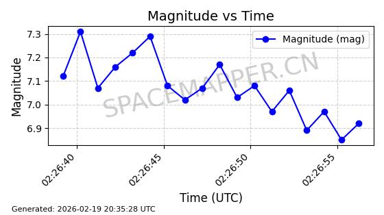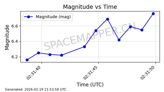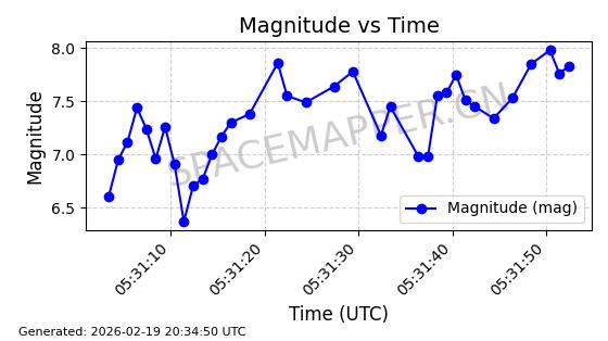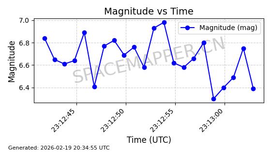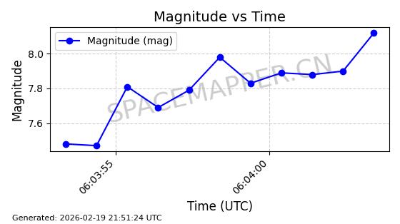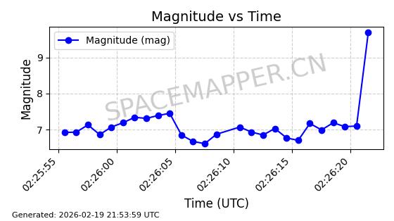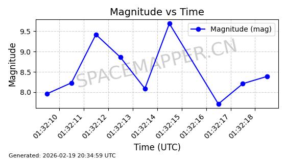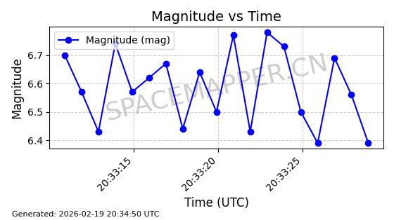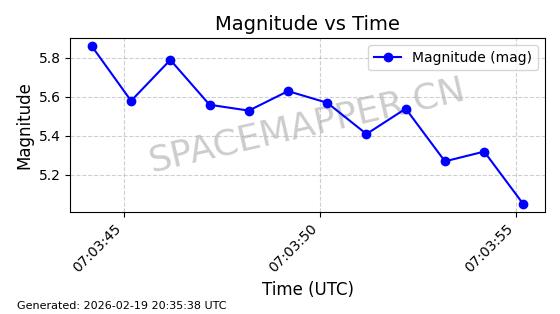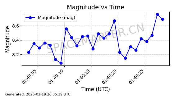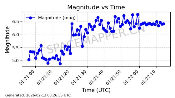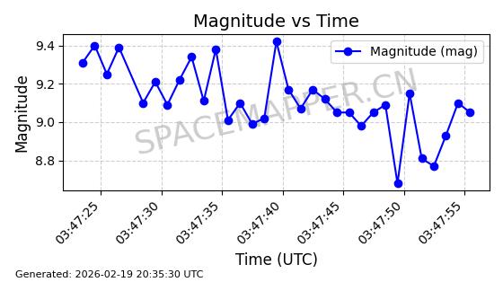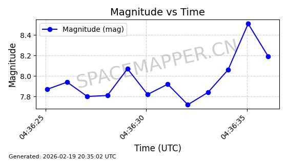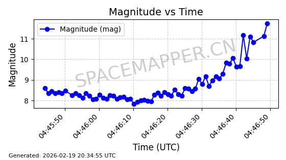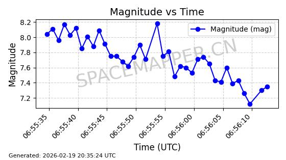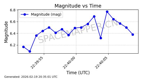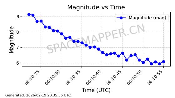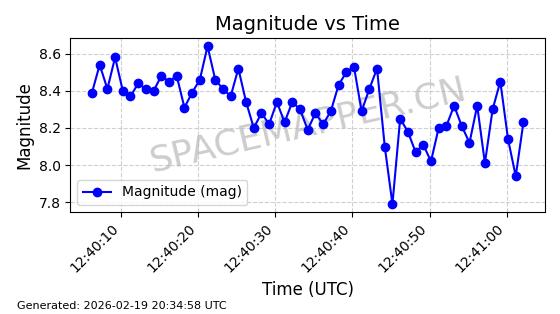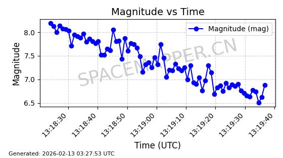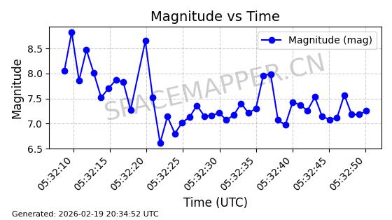 | STARLINK-3888 | 52454 | 52454 | 2022-05-06 同日期轨道 2022-049D 同批次轨道 | 在轨 | 95分钟 | 53.2170 | 538.896 | 540.612 | 0.0001240 | 2026-02-19 07:02:39 | ||