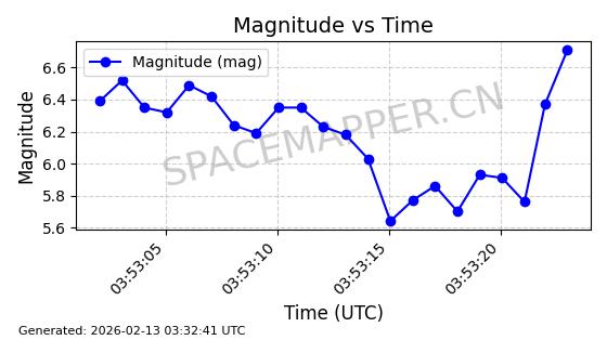 | STARLINK-3835 | 52476 | 52476 | 2022-05-06 同日期轨道 2022-049AB 同批次轨道 | 在轨 | 95分钟 | 53.2169 | 538.703 | 540.801 | 0.0001515 | 2026-02-19 04:43:39 | ||