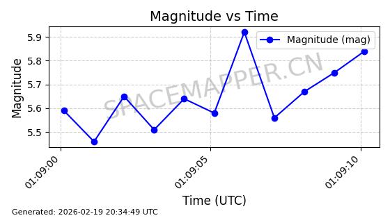 | STARLINK-3839 | 52480 | 52480 | 2022-05-06 同日期轨道 2022-049AF 同批次轨道 | 在轨 | 95分钟 | 53.2165 | 538.915 | 540.577 | 0.0001201 | 2026-02-19 06:42:47 | ||