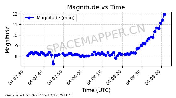 | STARLINK-3811 | 52383 | 52383 | 2022-04-29 同日期轨道 2022-045BE 同批次轨道 | 在轨 | 95分钟 | 53.2166 | 538.791 | 540.677 | 0.0001363 | 2026-02-19 00:10:38 | ||