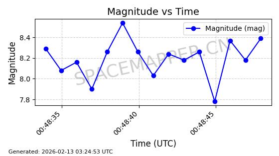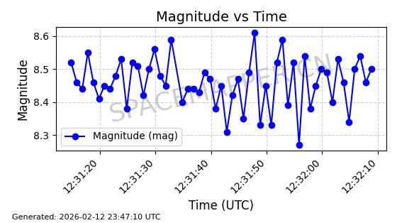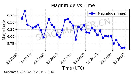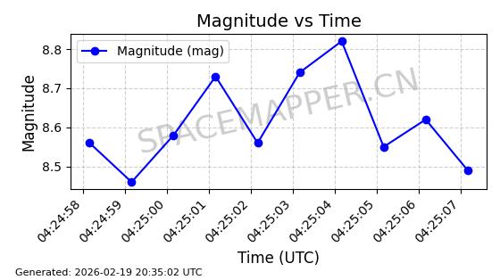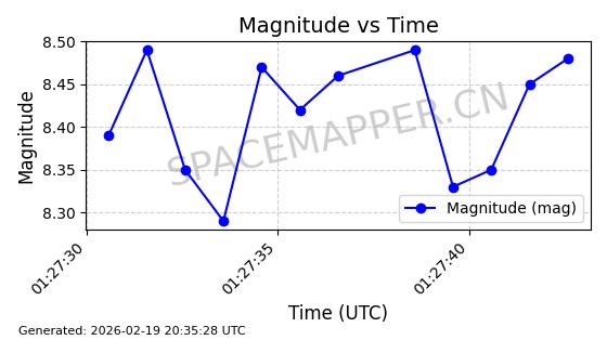 | STARLINK-3923 | 52489 | 52489 | 2022-05-06 同日期轨道 2022-049AQ 同批次轨道 | 在轨 | 95分钟 | 53.2167 | 538.888 | 540.622 | 0.0001253 | 2026-02-19 06:32:11 | ||