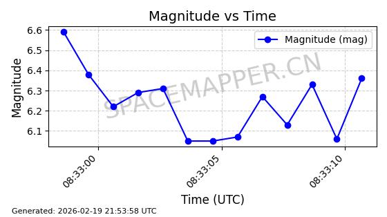 | STARLINK-3933 | 52538 | 52538 | 2022-05-13 同日期轨道 2022-051F 同批次轨道 | 在轨 | 95分钟 | 53.2163 | 538.749 | 540.725 | 0.0001428 | 2026-02-18 21:11:47 | ||