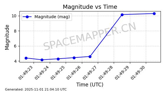 | STARLINK-31139 | 58688 | 58688 | 2023-12-29 同日期轨道 2023-211X 同批次轨道 | 在轨 | 94分钟 | 42.9986 | 465.907 | 474.749 | 0.0006455 | 2025-10-31 20:00:03 | ||