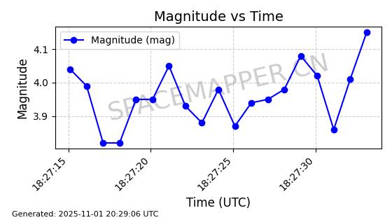 | STARLINK-31057 | 58545 | 58545 | 2023-12-08 同日期轨道 2023-192Q 同批次轨道 | 在轨 | 94分钟 | 53.1609 | 474.205 | 476.289 | 0.0001520 | 2025-10-31 16:49:16 | ||