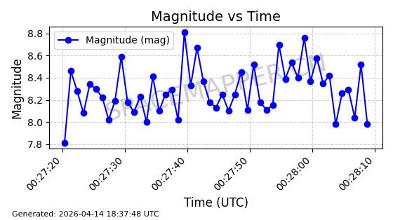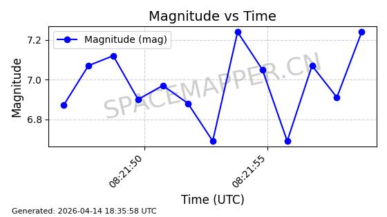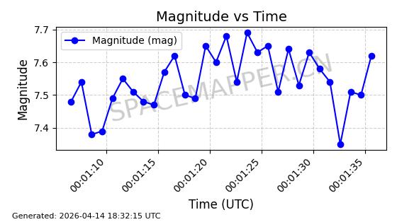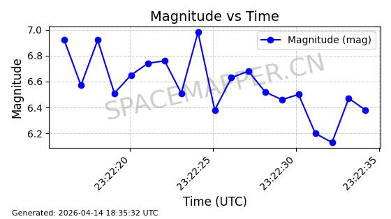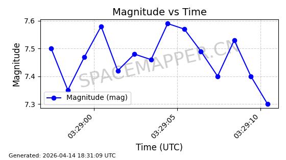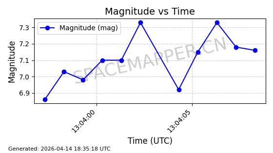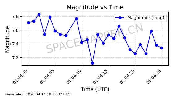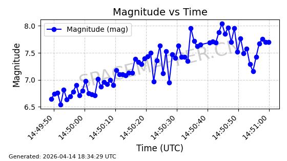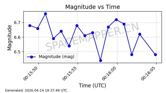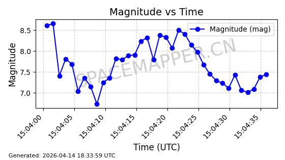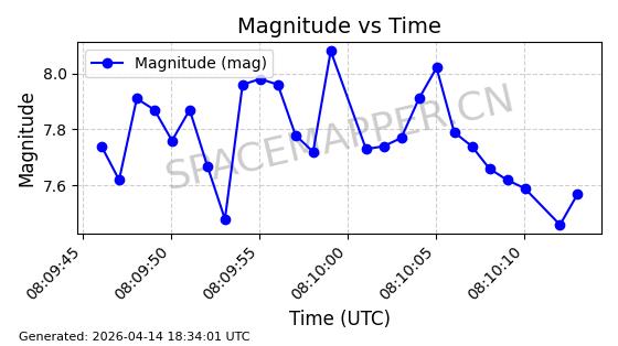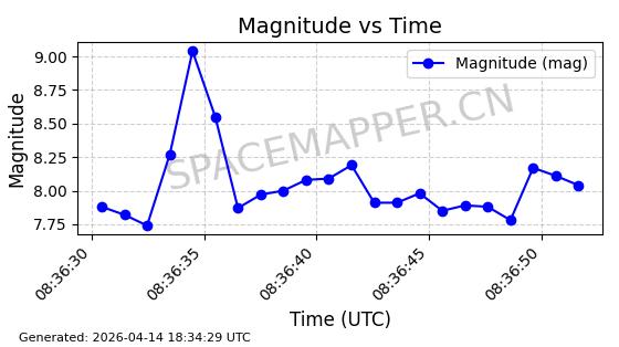| STARLINK-31316 | 59090 | 59090 | 2024-02-29 同日期轨道 2024-041S 同批次轨道 | 在轨 | 94分钟 | 43.0055 | 482.512 | 483.588 | 0.0000783 | 2026-04-13 06:47:25 | ||