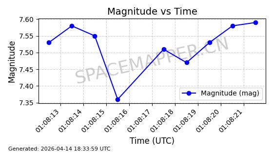 | 卫星名称 | AOE ID | NORAD ID | 发射日期 国际编号 | 在轨状态 | 轨道周期 | 轨道倾角 (度) | 近地点 (Km) | 远地点 (Km) | 偏心率 | 更新时间 (UTC) | 近期光变曲线 | 服务 |