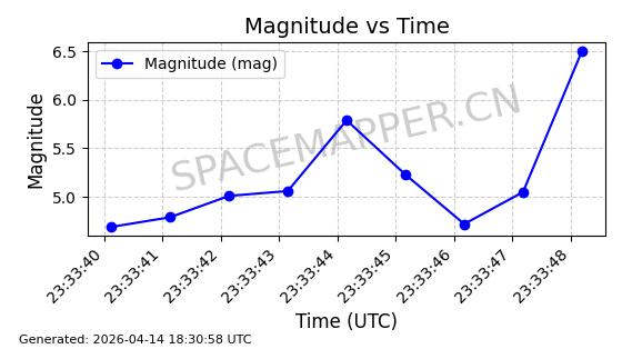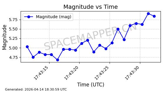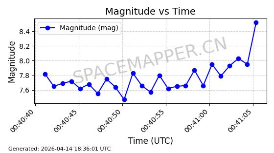 | STARLINK-31313 | 59088 | 59088 | 2024-02-29 同日期轨道 2024-041Q 同批次轨道 | 在轨 | 94分钟 | 43.0051 | 481.8 | 484.298 | 0.0001819 | 2026-04-13 02:05:34 | ||