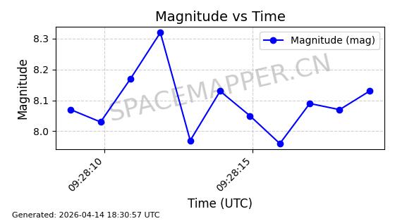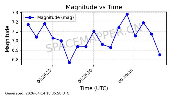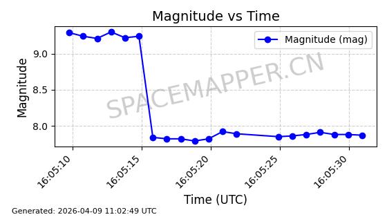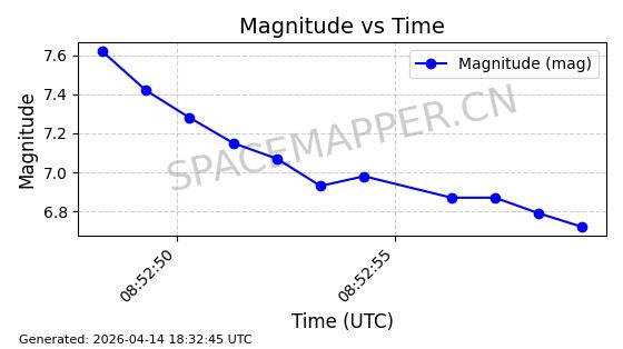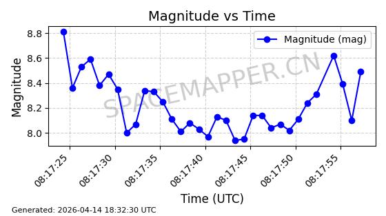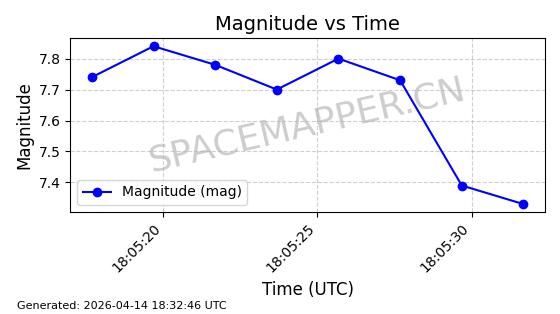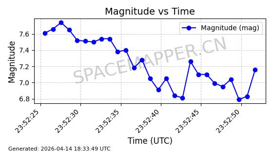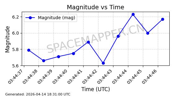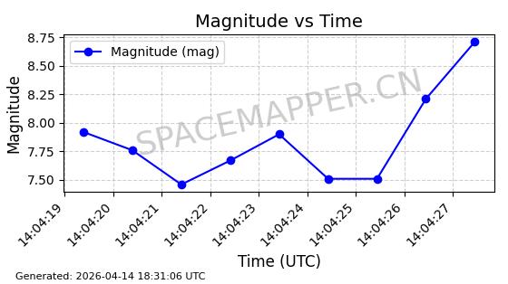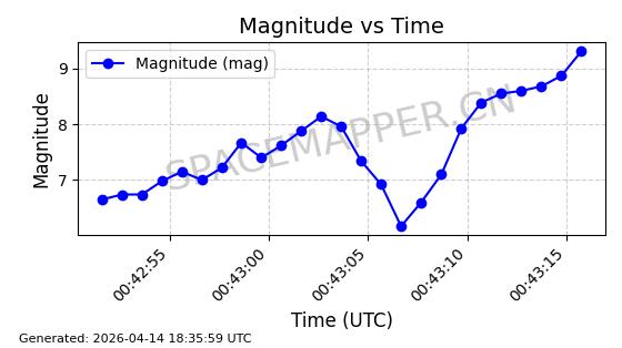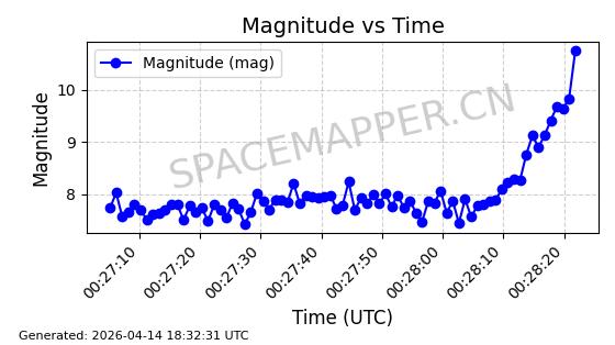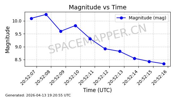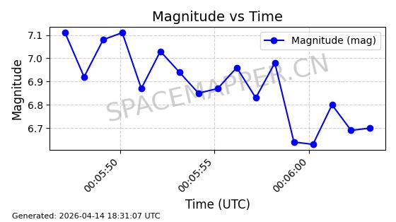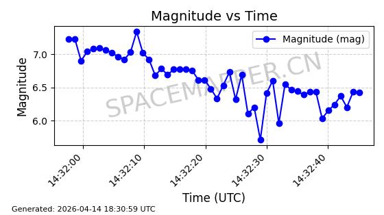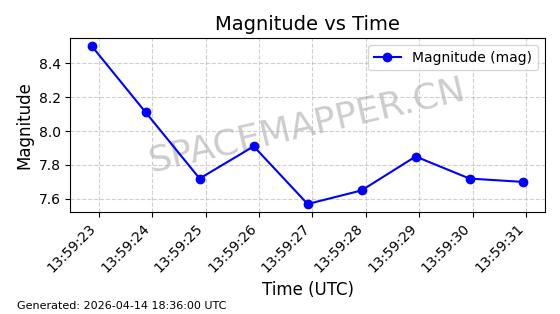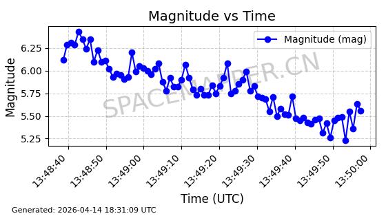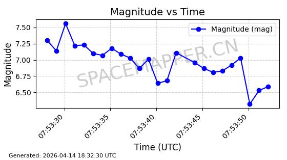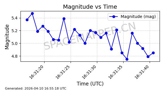 | STARLINK-31311 | 58948 | 58948 | 2024-02-10 同日期轨道 2024-027T 同批次轨道 | 在轨 | 94分钟 | 53.1615 | 474.552 | 475.95 | 0.0001019 | 2026-04-13 03:16:39 | ||