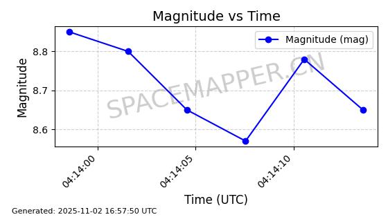| STARLINK-31402 | 59320 | 59320 | 2024-03-25 同日期轨道 2024-057A 同批次轨道 | 在轨 | 94分钟 | 43.0000 | 482.021 | 484.065 | 0.0001489 | 2025-10-31 20:01:54 | ||