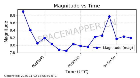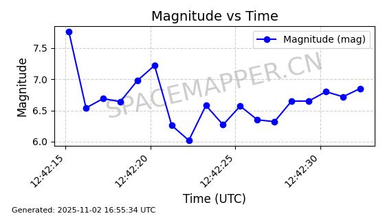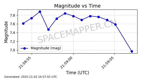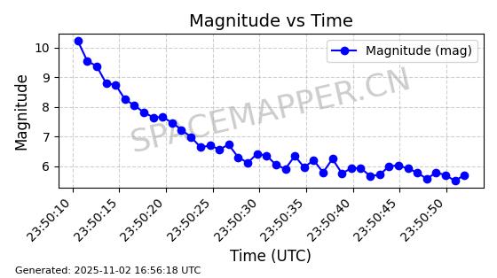 | STARLINK-31363 | 59782 | 59782 | 2024-05-18 同日期轨道 2024-093A 同批次轨道 | 在轨 | 94分钟 | 43.0016 | 482.355 | 483.893 | 0.0001120 | 2025-10-31 18:12:33 | ||