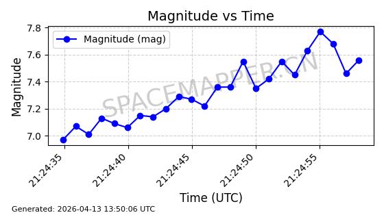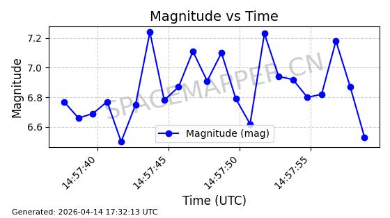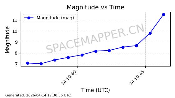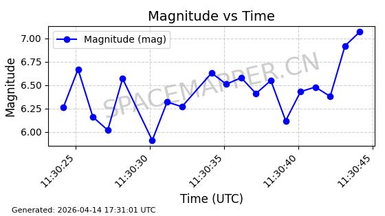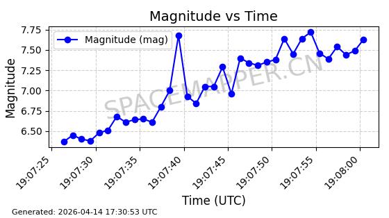 | STARLINK-31387 | 59407 | 59407 | 2024-04-05 同日期轨道 2024-064K 同批次轨道 | 在轨 | 94分钟 | 42.9978 | 482.75 | 483.57 | 0.0000597 | 2026-04-13 00:32:53 | ||