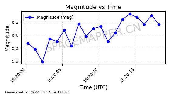 | STARLINK-31401 | 59417 | 59417 | 2024-04-05 同日期轨道 2024-064V 同批次轨道 | 在轨 | 94分钟 | 42.9998 | 482.344 | 483.898 | 0.0001131 | 2026-04-13 00:06:31 | ||