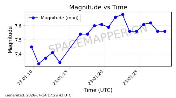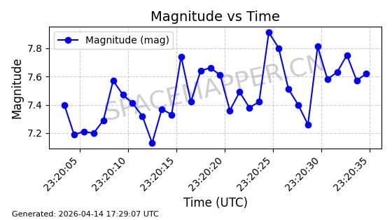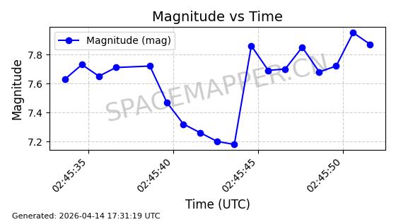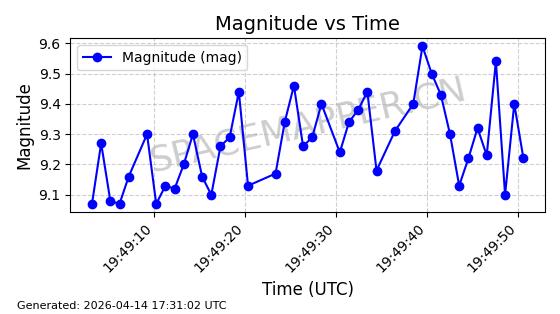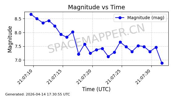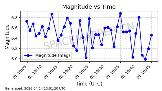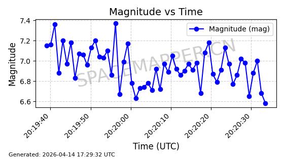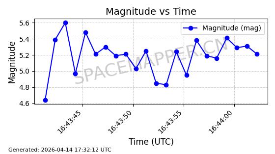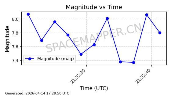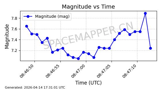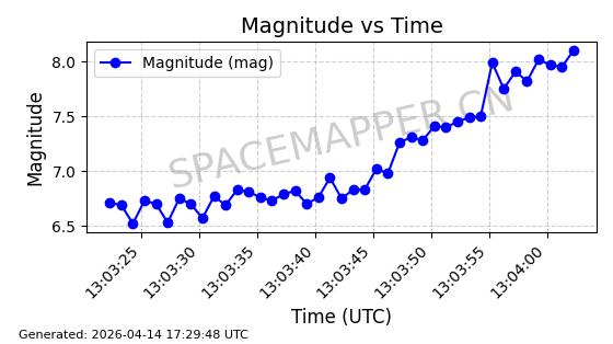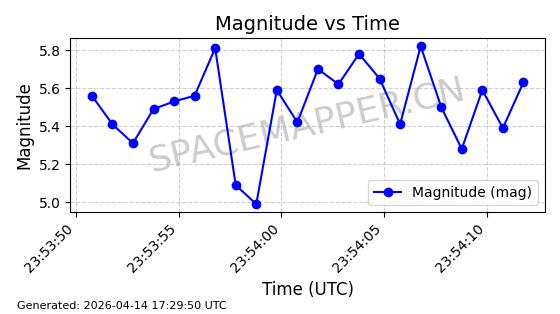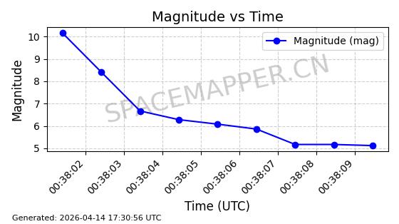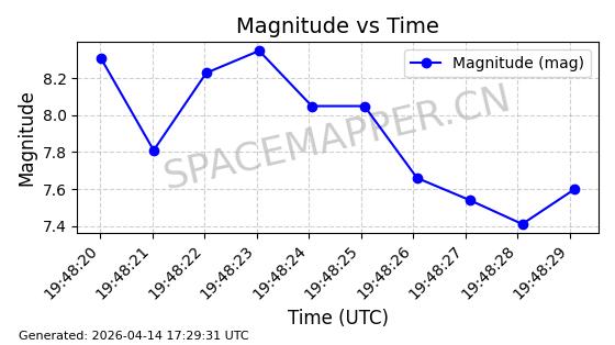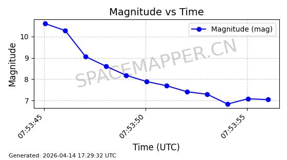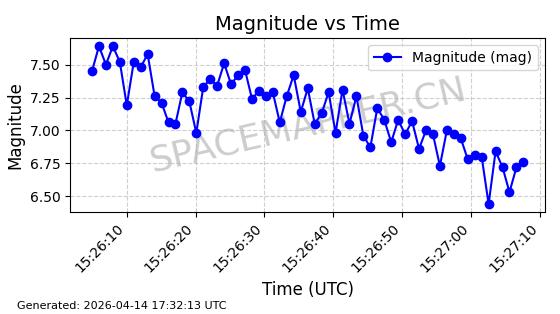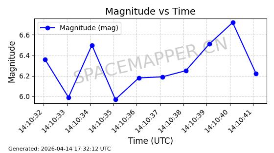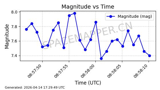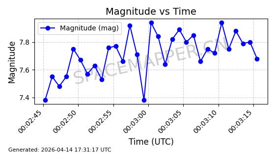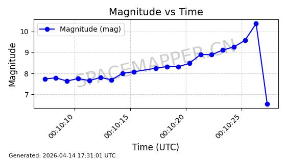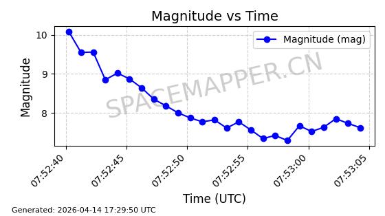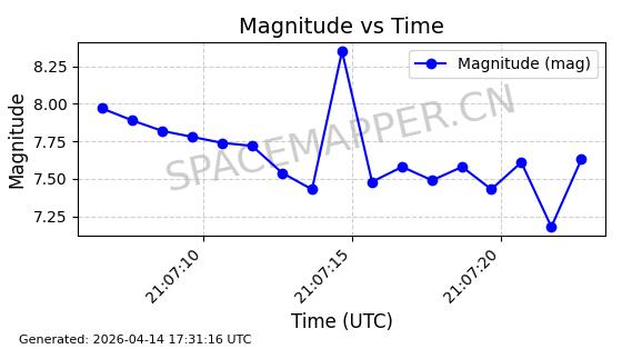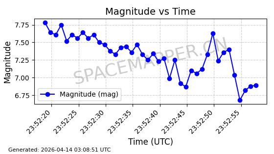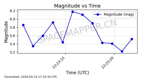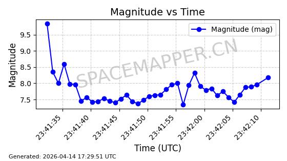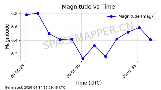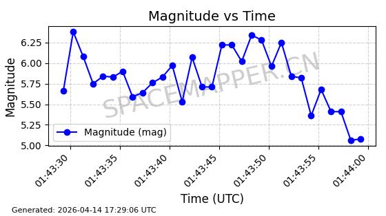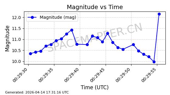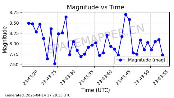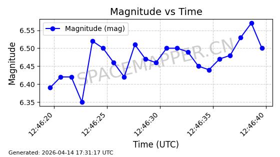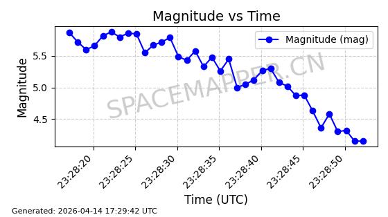 | STARLINK-31431 | 59002 | 59002 | 2024-02-23 同日期轨道 2024-036E 同批次轨道 | 在轨 | 94分钟 | 53.1595 | 474.344 | 476.316 | 0.0001438 | 2026-04-13 04:46:01 | ||
