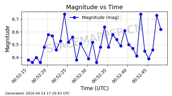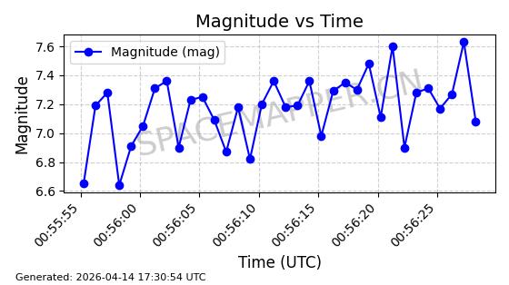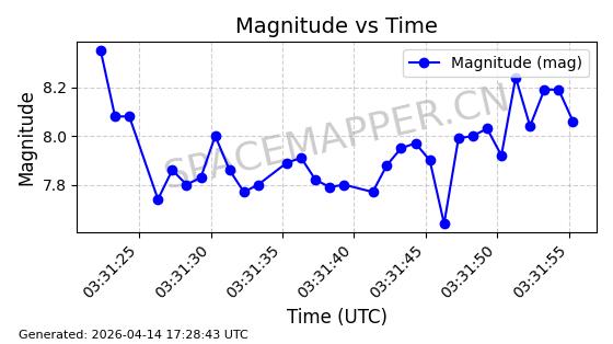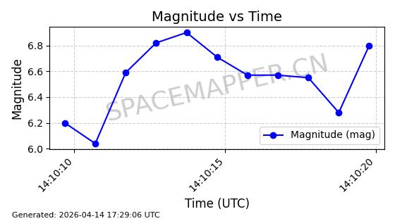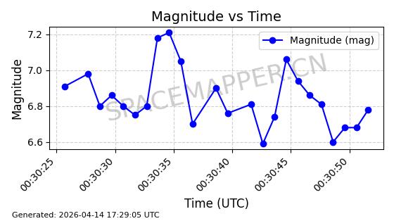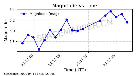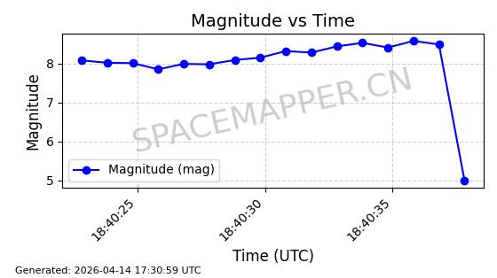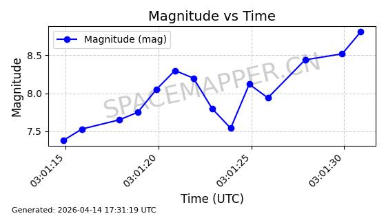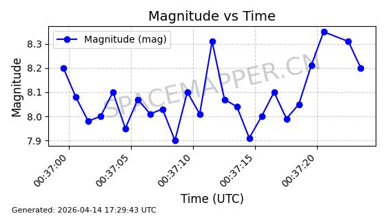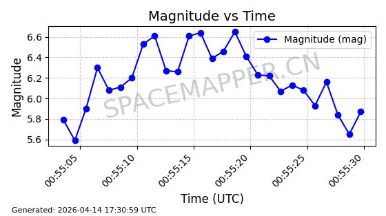 | 卫星名称 | AOE ID | NORAD ID | 发射日期 国际编号 | 在轨状态 | 轨道周期 | 轨道倾角 (度) | 近地点 (Km) | 远地点 (Km) | 偏心率 | 更新时间 (UTC) | 近期光变曲线 | 服务 |