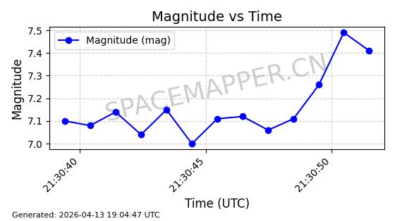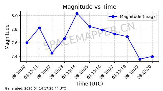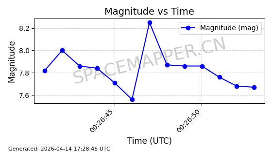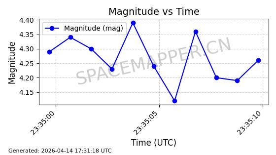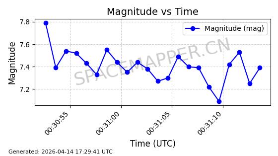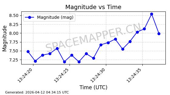 | STARLINK-31334 | 59157 | 59157 | 2024-03-04 同日期轨道 2024-044F 同批次轨道 | 在轨 | 94分钟 | 43.0034 | 482.222 | 483.884 | 0.0001211 | 2026-04-12 22:45:08 | ||