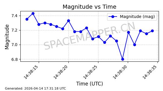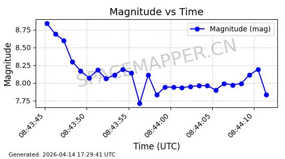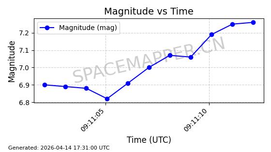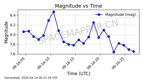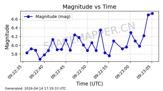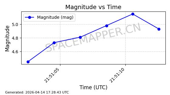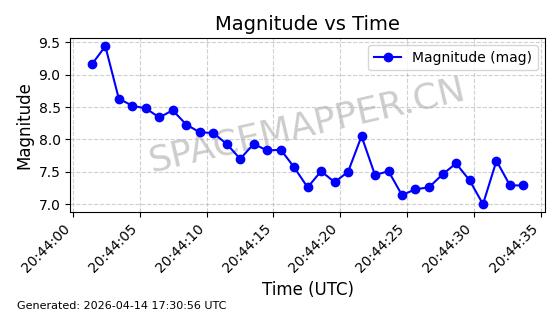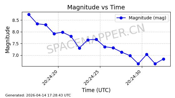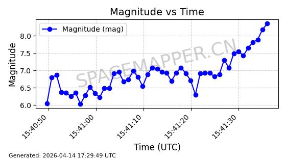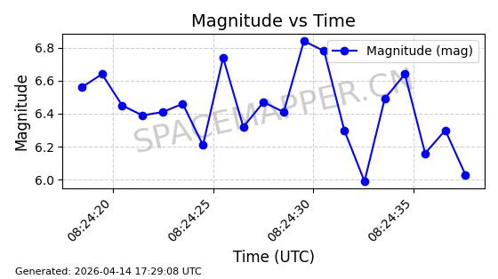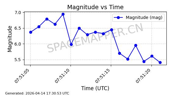 | STARLINK-31418 | 59251 | 59251 | 2024-03-16 同日期轨道 2024-049W 同批次轨道 | 已陨落 | 88分钟 | 42.9770 | 182.906 | 202.094 | 0.0014601 | 2025-03-16 18:35:31 | ||