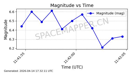 | STARLINK-31342 | 59166 | 59166 | 2024-03-04 同日期轨道 2024-044Q 同批次轨道 | 在轨 | 94分钟 | 43.0030 | 482.111 | 484.005 | 0.0001379 | 2026-04-13 04:42:06 | ||