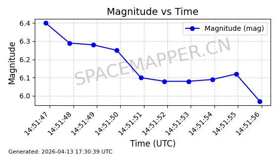 | STARLINK-31349 | 59317 | 59317 | 2024-03-24 同日期轨道 2024-056X 同批次轨道 | 在轨 | 94分钟 | 43.0081 | 482.012 | 484.152 | 0.0001559 | 2026-04-13 03:19:00 | ||