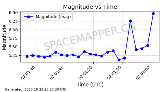 | STARLINK-11318 | 61252 | 61252 | 2024-09-25 同日期轨道 2024-175K 同批次轨道 | 在轨 | 92分钟 | 53.1581 | 358.954 | 360.508 | 0.0001152 | 2025-10-28 12:22:45 | ||