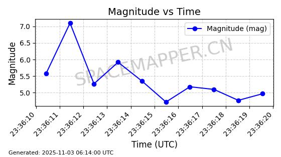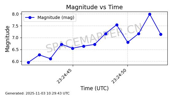 | STARLINK-31601 | 59209 | 59209 | 2024-03-11 同日期轨道 2024-046J 同批次轨道 | 在轨 | 94分钟 | 53.1602 | 474.413 | 476.071 | 0.0001209 | 2025-11-01 12:58:40 | ||