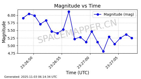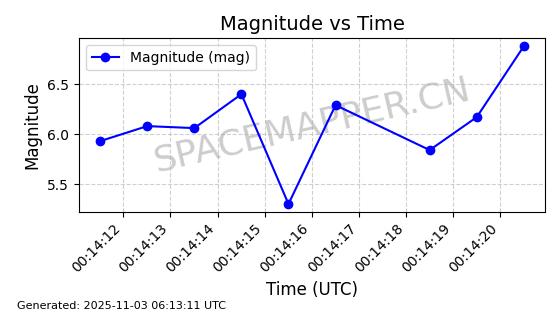 | STARLINK-3160 | 49454 | 49454 | 2021-11-13 同日期轨道 2021-104AY 同批次轨道 | 在轨 | 95分钟 | 53.2181 | 539.004 | 540.82 | 0.0001312 | 2025-11-01 15:13:01 | ||