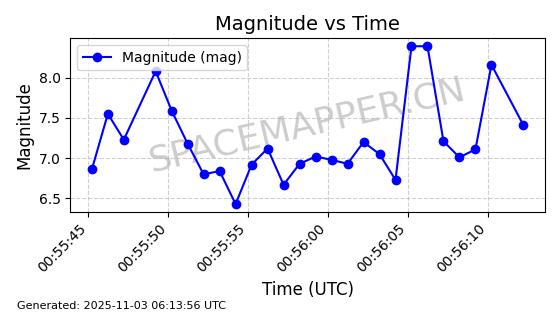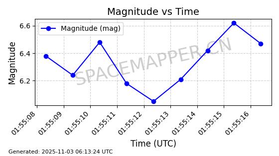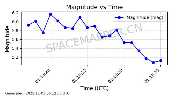| STARLINK-31656 | 60286 | 60286 | 2024-07-28 同日期轨道 2024-132J 同批次轨道 | 在轨 | 94分钟 | 53.1599 | 474.095 | 476.341 | 0.0001638 | 2025-11-01 06:45:04 |