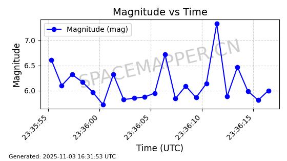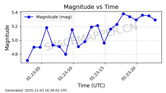 | STARLINK-31745 | 60329 | 60329 | 2024-08-02 同日期轨道 2024-136A 同批次轨道 | 在轨 | 94分钟 | 53.1610 | 474.34 | 476.144 | 0.0001315 | 2025-11-01 07:17:50 | ||
