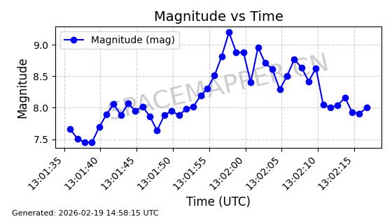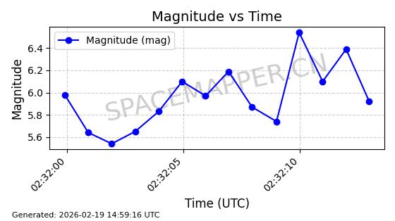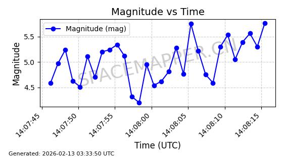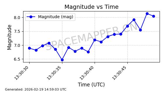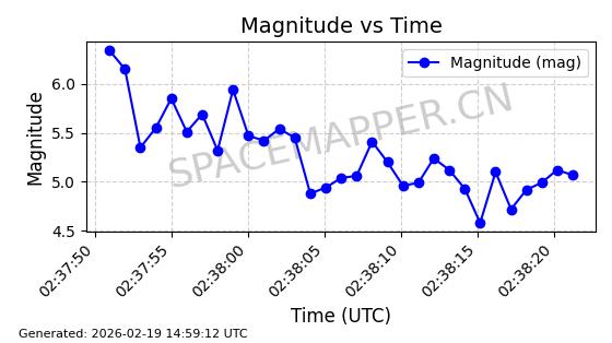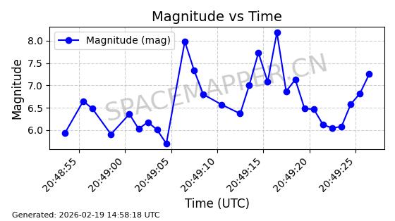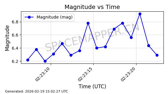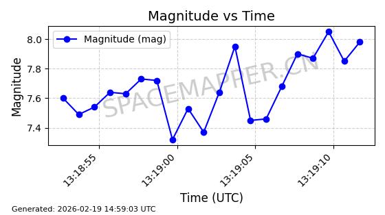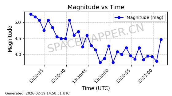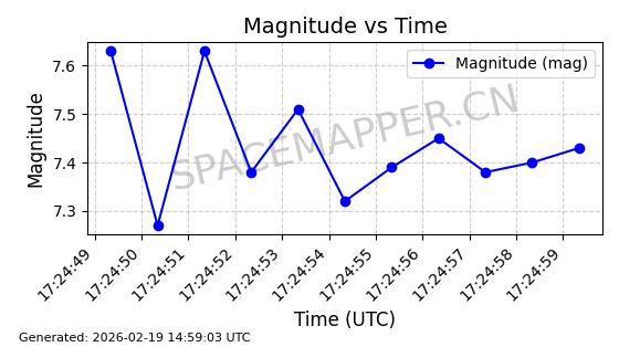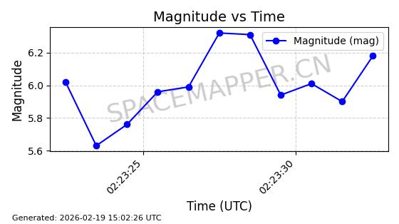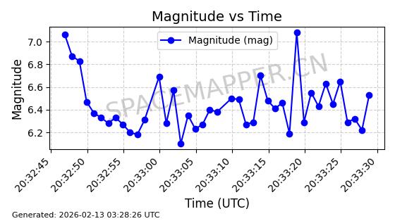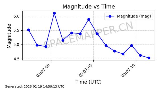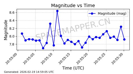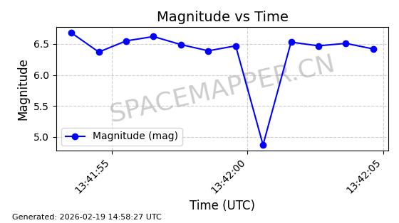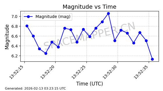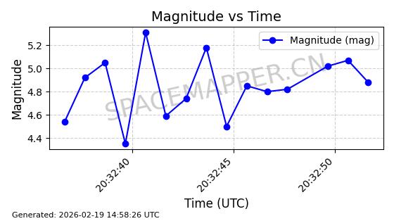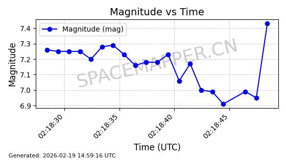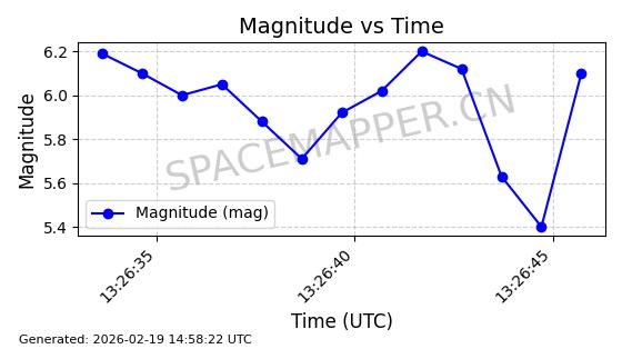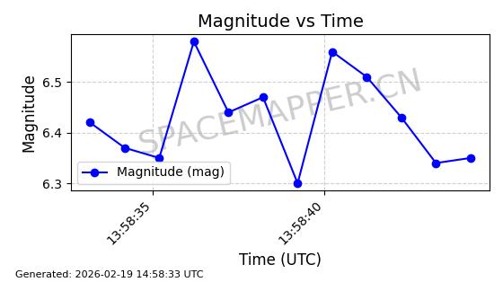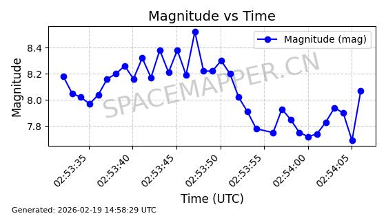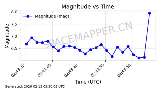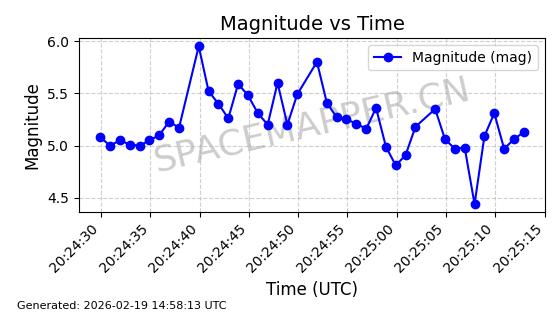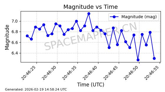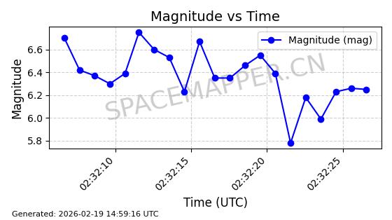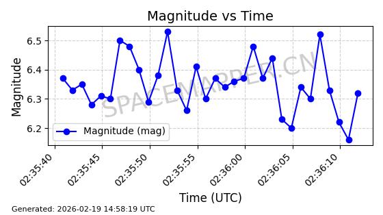 | STARLINK-4608 | 53621 | 53621 | 2022-08-28 同日期轨道 2022-104AK 同批次轨道 | 在轨 | 95分钟 | 53.2187 | 538.811 | 540.727 | 0.0001384 | 2026-02-18 01:40:00 | ||
