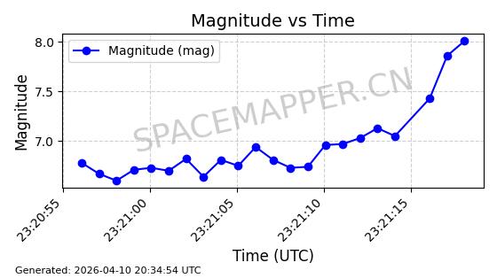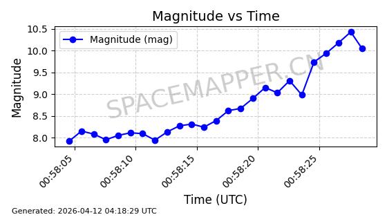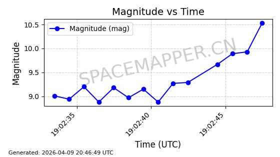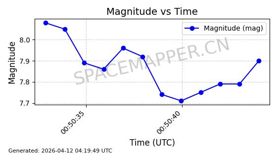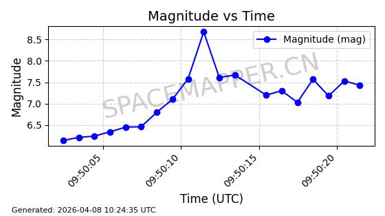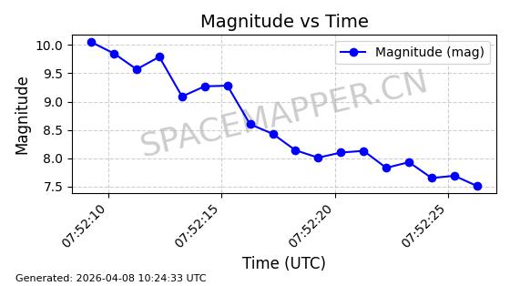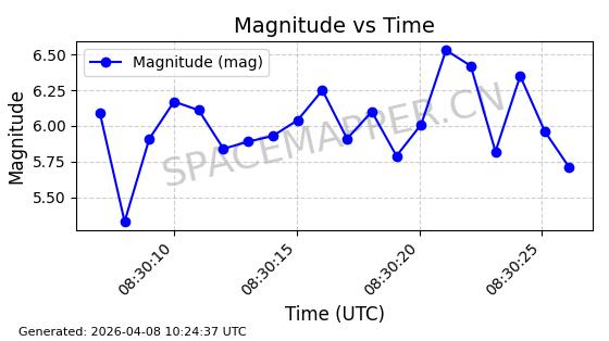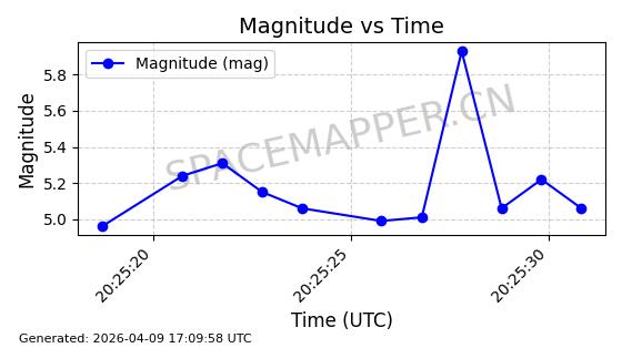 | STARLINK-31879 | 59937 | 59937 | 2024-06-01 同日期轨道 2024-106R 同批次轨道 | 在轨 | 94分钟 | 42.9977 | 482.031 | 484.059 | 0.0001477 | 2026-04-10 19:59:50 | ||