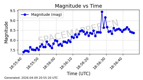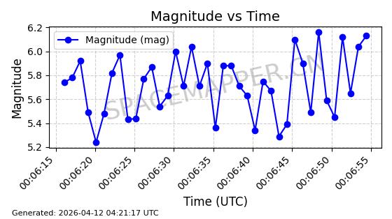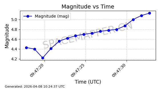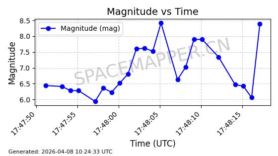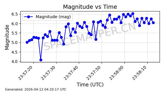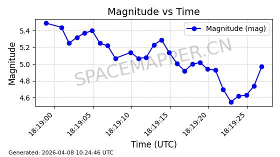 | STARLINK-31918 | 60037 | 60037 | 2024-06-08 同日期轨道 2024-111X 同批次轨道 | 在轨 | 94分钟 | 53.1609 | 474.526 | 475.924 | 0.0001019 | 2026-04-11 04:44:17 | ||