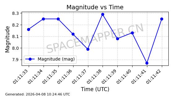 | STARLINK-31958 | 59924 | 59924 | 2024-06-01 同日期轨道 2024-106C 同批次轨道 | 在轨 | 94分钟 | 43.0025 | 482.41 | 483.714 | 0.0000949 | 2026-04-11 01:49:26 | ||