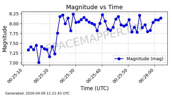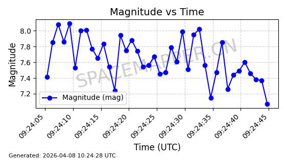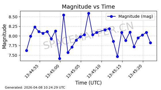 | STARLINK-31891 | 59854 | 59854 | 2024-05-23 同日期轨道 2024-097V 同批次轨道 | 在轨 | 94分钟 | 43.0016 | 482.38 | 483.828 | 0.0001054 | 2026-04-11 06:02:52 | ||