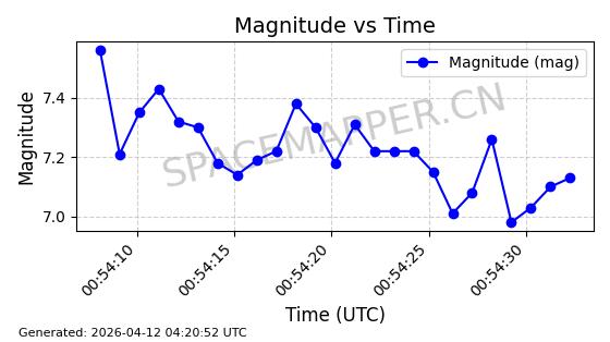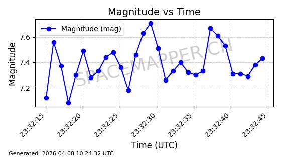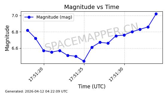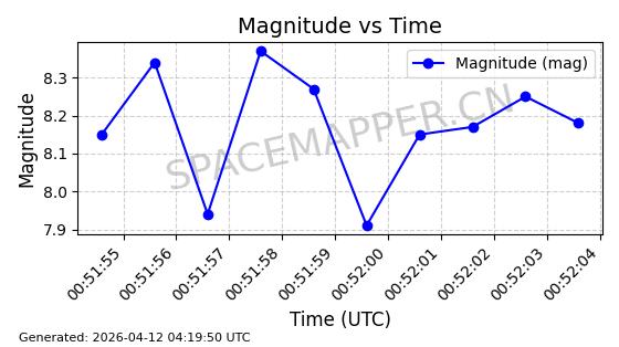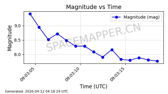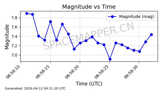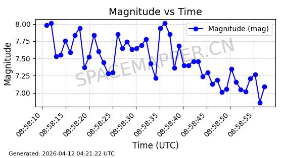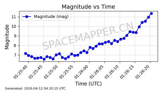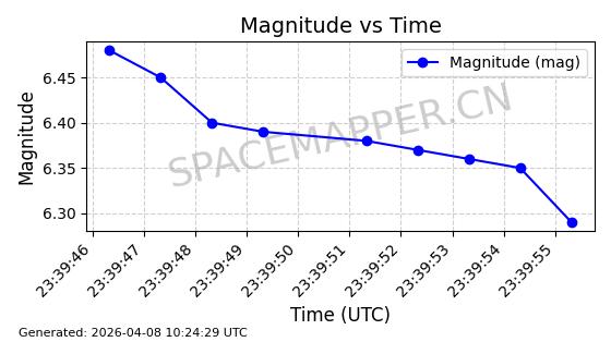 | STARLINK-31932 | 59929 | 59929 | 2024-06-01 同日期轨道 2024-106H 同批次轨道 | 在轨 | 94分钟 | 42.9977 | 482.722 | 483.858 | 0.0000827 | 2026-04-11 03:42:02 | ||
