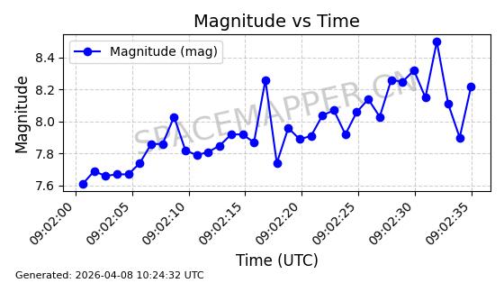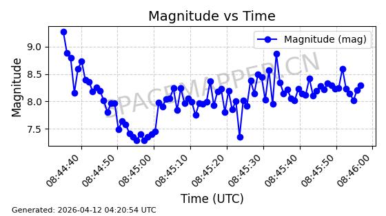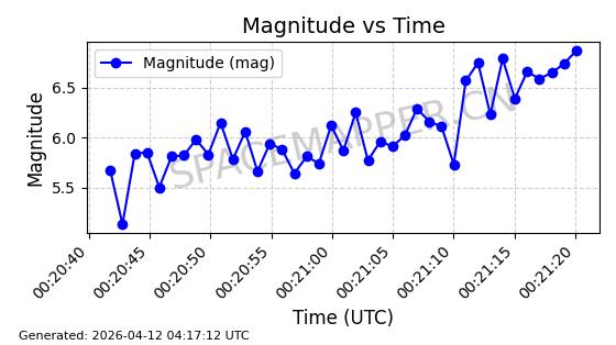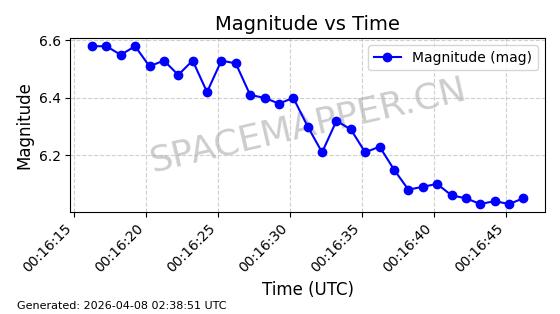 | STARLINK-31938 | 59865 | 59865 | 2024-05-24 同日期轨道 2024-098H 同批次轨道 | 在轨 | 94分钟 | 43.0020 | 482.486 | 483.626 | 0.0000830 | 2026-04-11 06:42:41 | ||