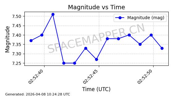 | STARLINK-3189 | 51464 | 51464 | 2022-02-03 同日期轨道 2022-010J 同批次轨道 | 在轨 | 95分钟 | 53.2170 | 538.754 | 540.738 | 0.0001433 | 2026-04-11 02:00:58 | ||