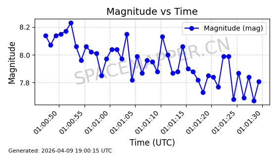 | STARLINK-31947 | 59835 | 59835 | 2024-05-23 同日期轨道 2024-097A 同批次轨道 | 在轨 | 94分钟 | 43.0022 | 482.489 | 483.653 | 0.0000847 | 2026-04-11 00:26:45 | ||