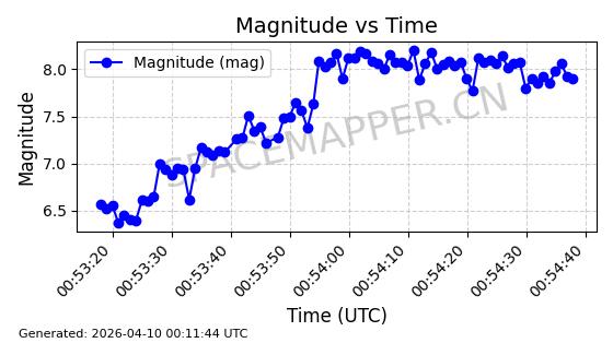 | STARLINK-31954 | 60102 | 60102 | 2024-06-23 同日期轨道 2024-117M 同批次轨道 | 在轨 | 94分钟 | 53.1592 | 474.898 | 475.672 | 0.0000564 | 2026-04-10 16:38:22 | ||