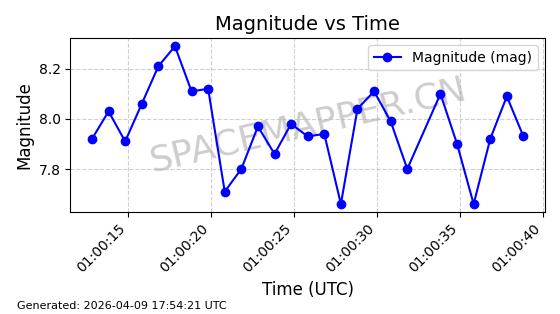 | 卫星名称 | AOE ID | NORAD ID | 发射日期 国际编号 | 在轨状态 | 轨道周期 | 轨道倾角 (度) | 近地点 (Km) | 远地点 (Km) | 偏心率 | 更新时间 (UTC) | 近期光变曲线 | 服务 |