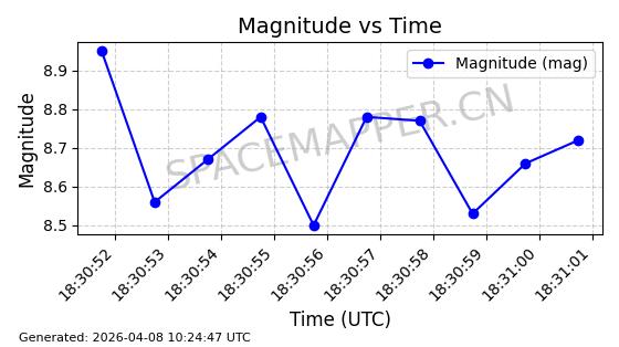 | STARLINK-31878 | 60031 | 60031 | 2024-06-08 同日期轨道 2024-111R 同批次轨道 | 在轨 | 94分钟 | 53.1597 | 474.38 | 476.122 | 0.0001270 | 2026-04-11 02:29:02 | ||
